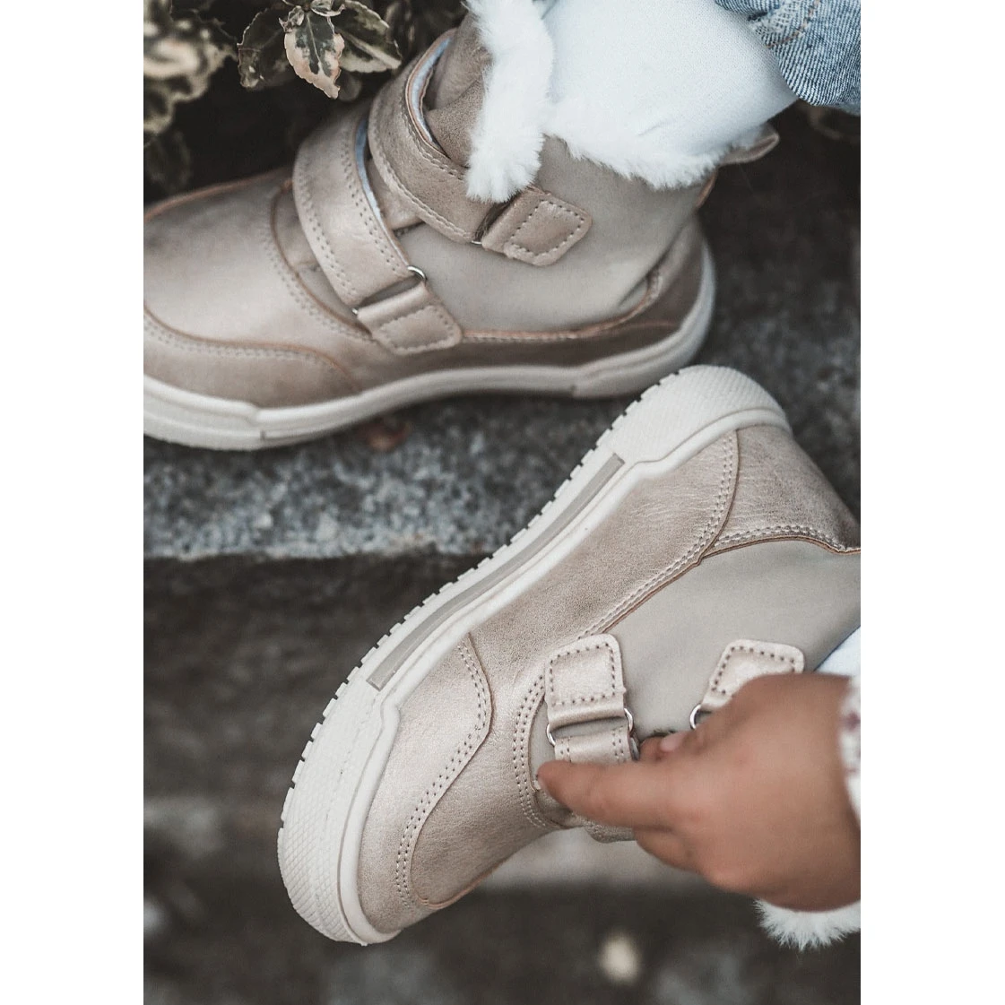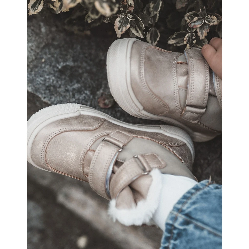 Des chaussures d’hiver parfaites pour votre tout-petit! Les bottes sont en cuir écologique. Ils ont également un contrefort de talon rigide. Isolé avec une fourrure agréable au toucher. Les bottes sont montées sur une plate-forme, qui protégera efficacement contre le sol froid. Modèle avec fermeture velcro. Ce modèle devrait être dans la garde-robe de votre enfant ! Lorsque vous choisissez une taille, veuillez utiliser le tableau des tailles.