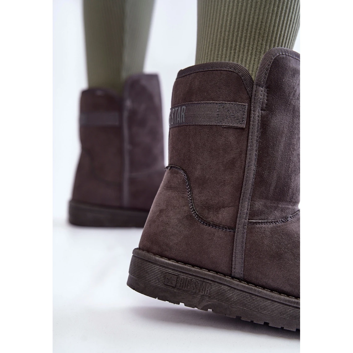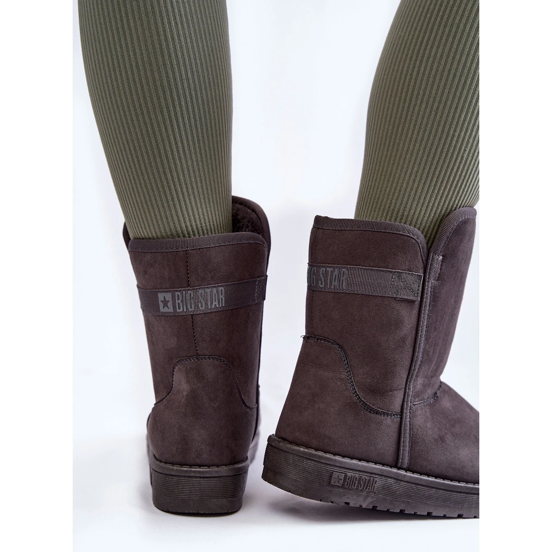 Bottes de neige parfaites pour les journées froides de la marque Big Star ! Fabriqué en matière textile agréable au toucher. Ils ont une plate-forme qui isole parfaitement du sol. Les bottes de neige ont été isolées avec de la fourrure douce. L’empeigne irrégulière s’intégrera parfaitement dans des tenues avec un pantalon. De plus, à l’arrière de la tige se trouve une bande décorative avec le logo Big Star. Lorsque vous choisissez une taille, veuillez utiliser le tableau des tailles.