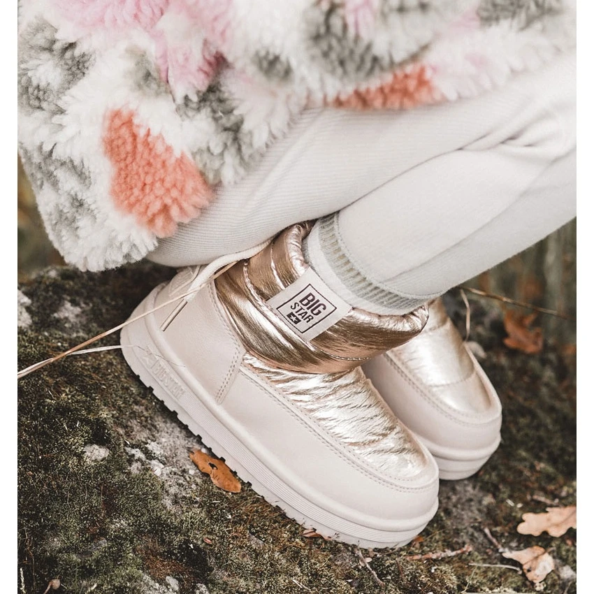 Pendant les journées froides, il vaut la peine de prendre soin de chaussures chaudes pour nos enfants, c’est pourquoi la marque Big Star a créé ces merveilleuses bottes de neige ! Ils ont été isolés avec de la fourrure douce. La tige est composée d’une combinaison de cuir écologique et d’un matériau qui protège du froid et du vent. Ces bottes de neige ont une trépointe en haut de la tige. Situé sur une plate-forme délicate qui protège contre le sol froid. Lorsque vous choisissez une taille, veuillez utiliser le tableau des tailles.
