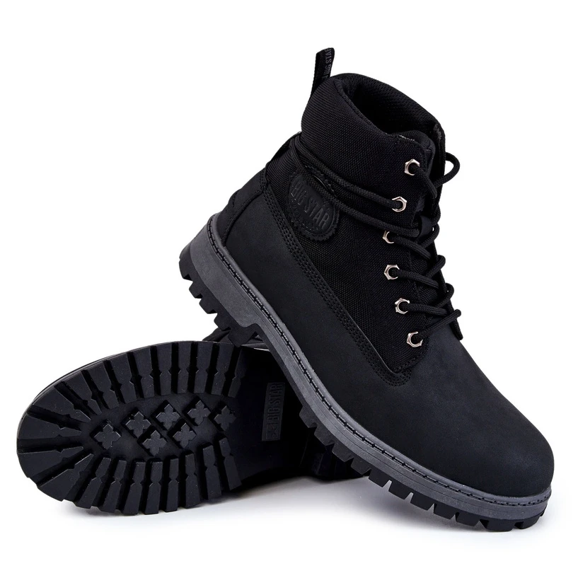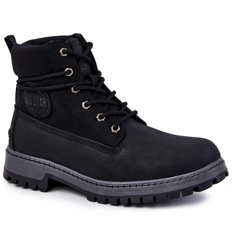 Bottes pour hommes de la marque polonaise Big Star avec une tige composée d’une combinaison de matière textile et de cuir écologique. Modèle lacé classique. Les chaussures ont une semelle intérieure MEMORY FOAM SYSTEM unique, qui mémorise la forme du pied, offre un ajustement parfait et absorbe les chocs. De plus, il résiste à la déformation et permet l’évaporation de l’humidité et la régulation de la température. Le contrefort de talon renforcé stabilisera le pied. Lorsque vous choisissez une taille, veuillez utiliser le tableau des tailles.
