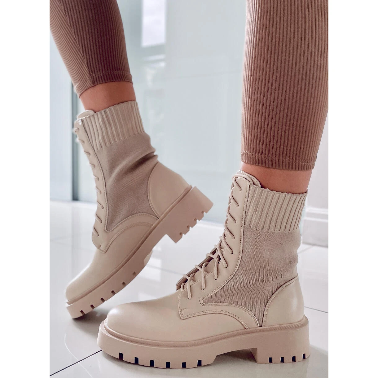 Bottes pour femmes – travailleuses à semelles hautes. Le modèle avec tige chaussette est déjà un classique de la mode 🙂 Grâce au laçage, il s’adapte à toutes les épaisseurs de pied, et la tige souple adhère parfaitement à la jambe et facilite l’enfilage… C’est une chaussure parfaite pour l’automne! Matériau extérieur – cuir écologique + tissu.