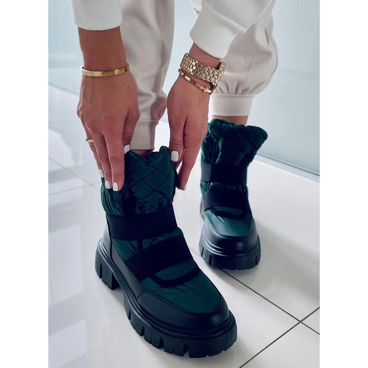 Bottes de neige pour femme à semelle haute. Obtenez ces bottes isolées avec une fourrure épaisse maintenant, et l’hiver ne vous fera pas peur ! Une semelle épaisse offrira une grande isolation du sol, ainsi qu’un confort à chaque pas. Matériau extérieur – cuir écologique + tissu en nylon.