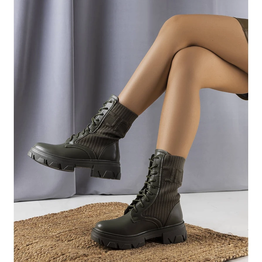 Boots Kori à tige souple en tissu côtelé. Le reste de la chaussure est en éco-cuir. Attaché sur le devant avec des lacets de couleur assortie. Coupe workwear, montée sur une semelle plate et épaisse avec découpes. simple peau. Des ouvriers modernes et stylés qui compléteront, par exemple, une tenue basique et lui donneront de l’expressivité ! Numérotation standard, veuillez suivre votre taille.