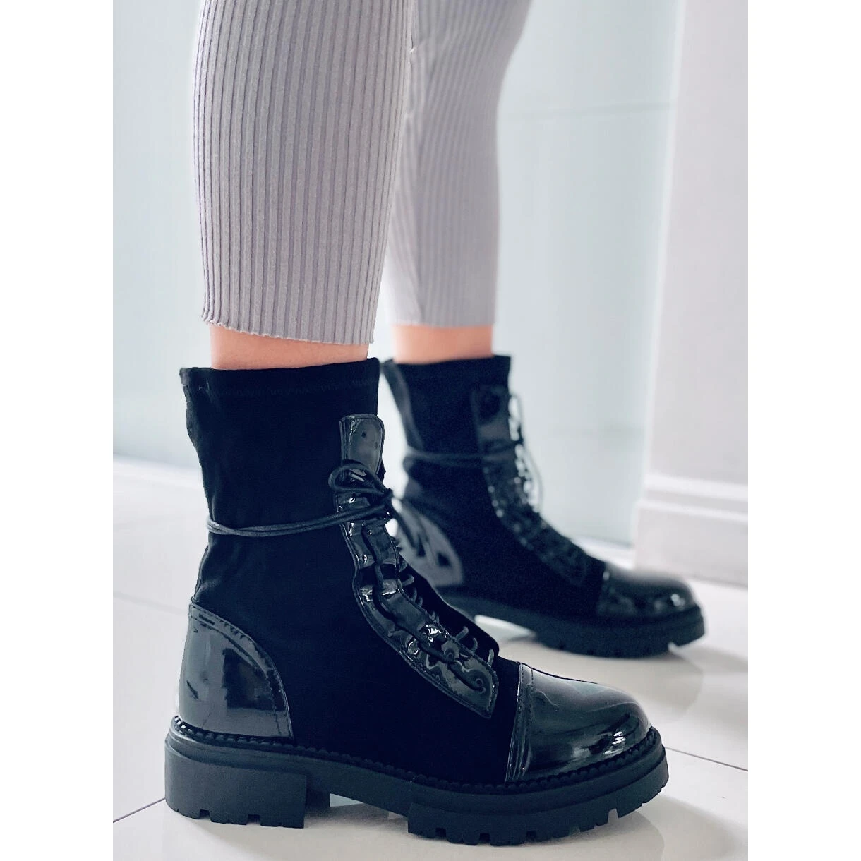 Bottes pour femmes – travailleuses sur le protecteur. La combinaison efficace du cuir écologique et du daim écologique est une solution à la mode qui répondra sûrement à votre intérêt 🙂 Le laçage décoratif souligne leur caractère unique. Ce sont les chaussures parfaites pour un usage quotidien ! Matériau extérieur – cuir écologique + daim écologique.