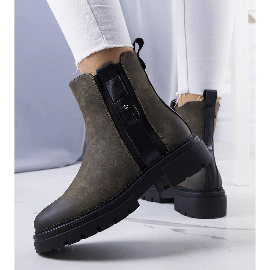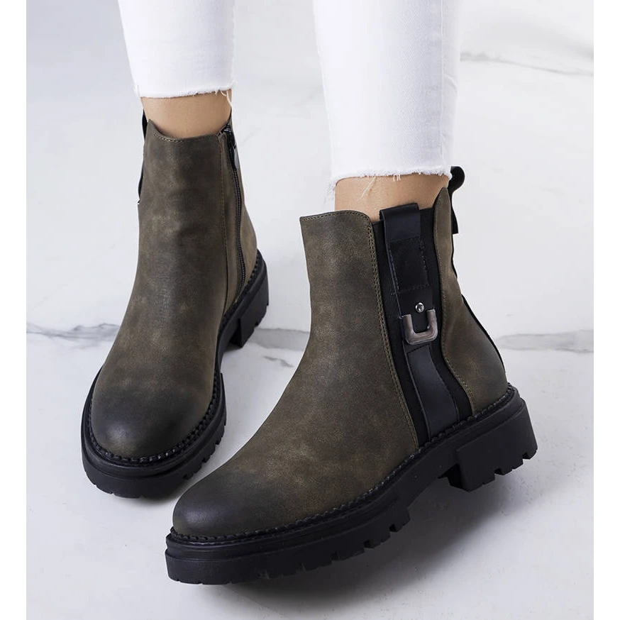 Les bottes pour femmes Xiomara sont fabriquées en cuir suédé écologique de couleur verte. L’intérieur a été isolé avec une fourrure de chaussure agréable au toucher. Les bottes Xiomara sont fermées par une fermeture éclair, ce qui les rend faciles et efficaces à enfiler. De plus, il y a du caoutchouc cousu sur le côté de la tige, qui ajustera la tige à la largeur de la jambe. Une semelle trappeur épaisse isole bien du sol et ajoute quelques centimètres à la hauteur. Grâce aux rainures, il a des propriétés antidérapantes. Des accessoires intéressants donnent aux bottes vertes un caractère unique Numérotation standard, veuillez suivre votre taille.
