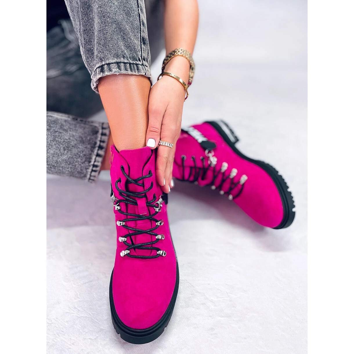 Bottes en daim pour femmes – trappeurs. Les couleurs les plus en vogue de cette saison vous feront ne plus les quitter des yeux ! Leur coupe est soulignée par un laçage comme dans les chaussures de trekking. En revanche, la semelle dotée d’un protecteur assurera votre confort, et la fermeture éclair sur le côté de la tige facilitera l’enfilage. Ne vous laissez plus convaincre et commandez-les dès aujourd’hui ! Ils sont fabriqués en daim écologique et l’intérieur est doublé de fourrure délicate.