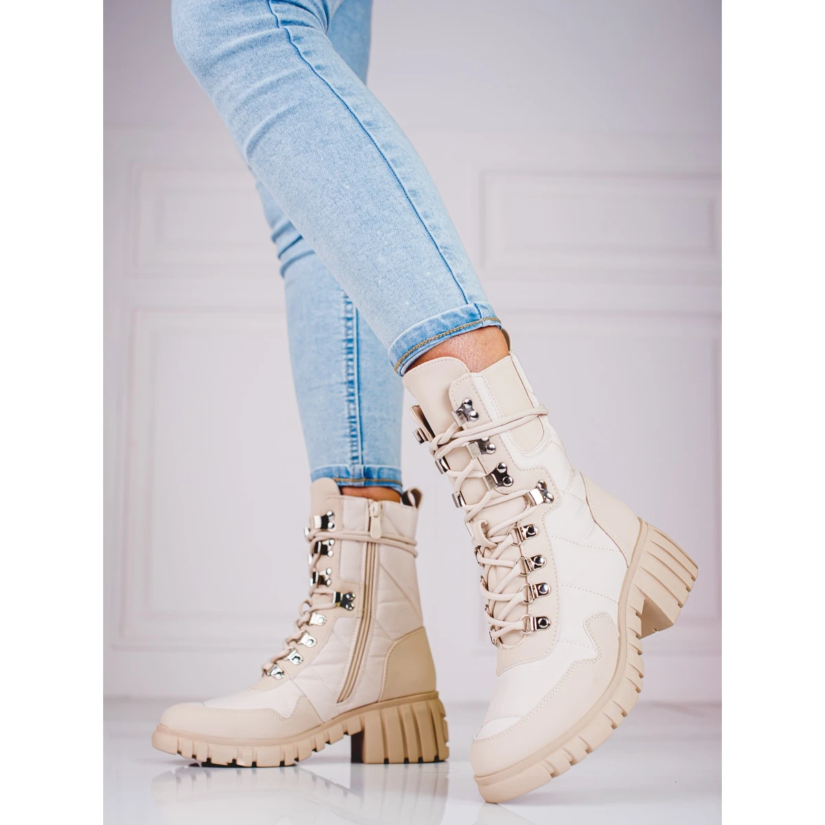 SHELOVET Bottes aux femmes Femmes Beige Cuir artificiel Matériau différent