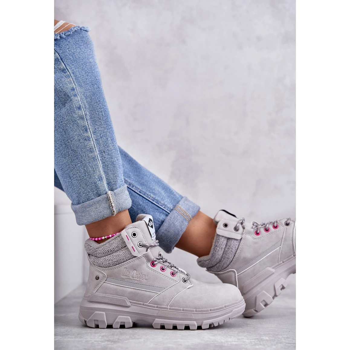 Bottes de randonnée pour femmes en cuir écologique avec un talon renforcé. Les chaussures sont montées sur un talon plat et une plateforme massive, ce qui les rend extrêmement stables. Ils ont une isolation polaire à l’intérieur. La semelle intérieure est douce et confortable, ainsi qu’isolée. Ces bottes de randonnée sont parfaites pour l’automne, les journées froides. Lorsque vous choisissez une taille, veuillez utiliser le tableau des tailles.