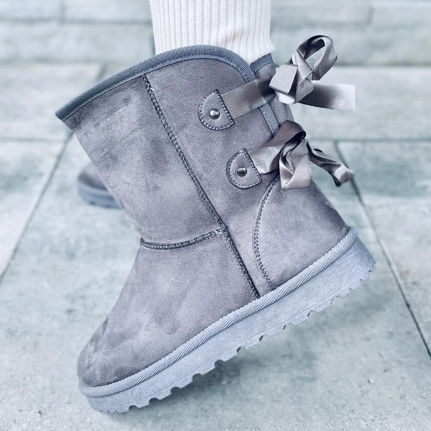 Bottes de neige pour femmes – émules sur une semelle haute. Si vous cherchez les bottes d’hiver parfaites, choisissez ce modèle isolé avec de la fourrure épaisse – vous ne le regretterez pas ! L’arrière de la tige est varié avec de jolis nœuds … Vous en tomberez amoureux jusqu’aux oreilles 🙂 Matière extérieure – daim écologique.