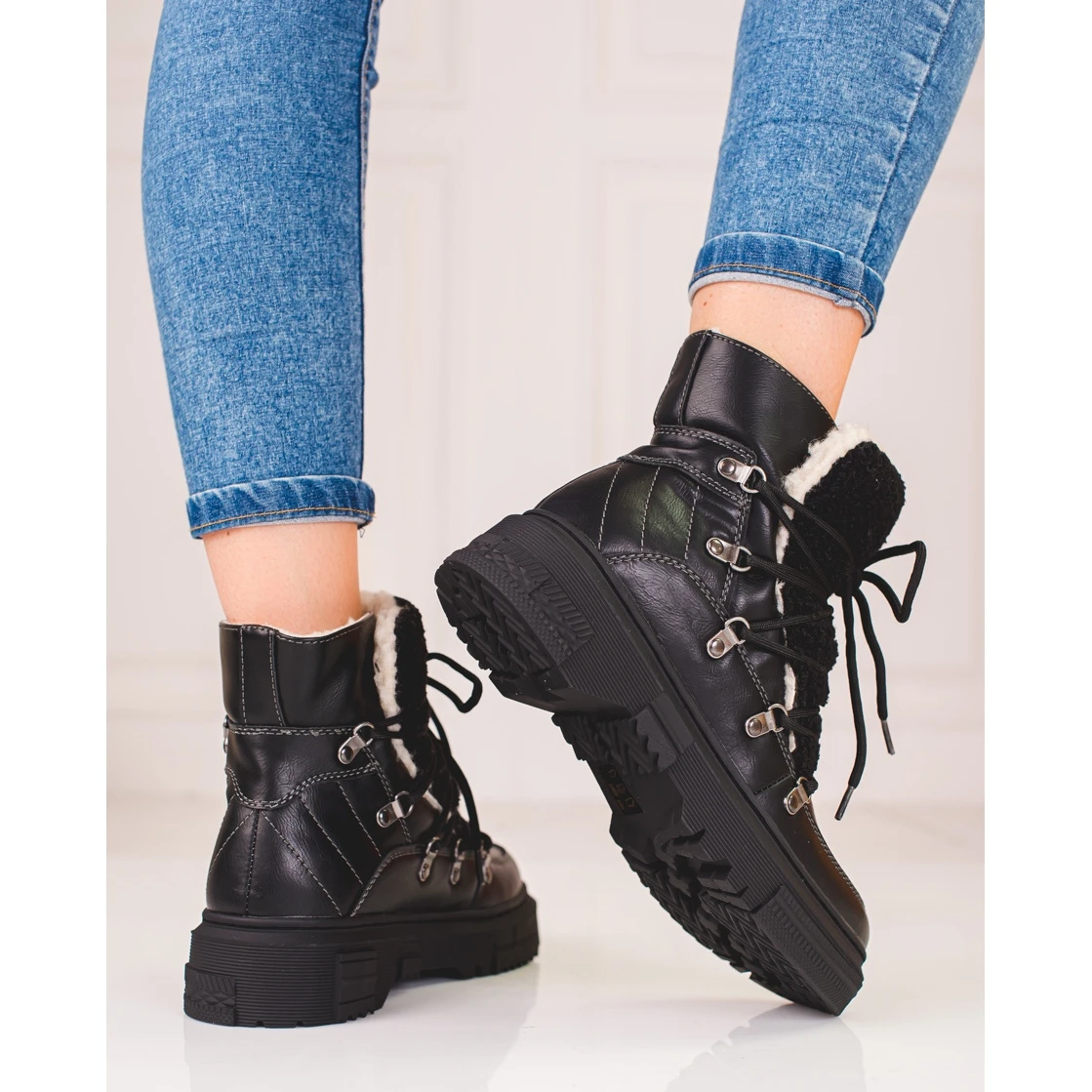 - Modèle: Bottes de neige noires avec manteau en peau de mouton Shelovet