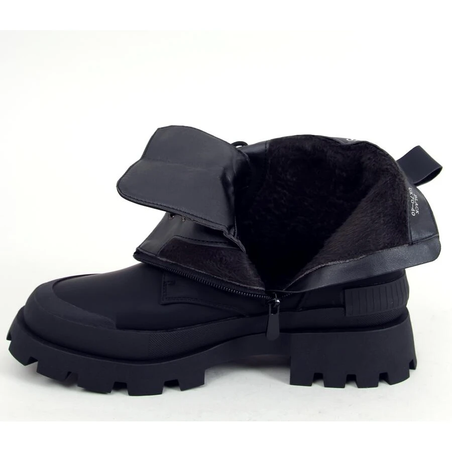 Bottes de randonnée noires pour femmes. Le modèle se distingue par la coupe la plus tendance sur une semelle haute et une finition mate efficace. Non seulement ils ont fière allure, mais ils sont aussi très confortables ! Les chaussures sont entièrement à lacets, mais ont également une fermeture zippée pratique sur le côté de la tige. Fabriqué en cuir écologique, et l’intérieur est doublé de fourrure délicate.