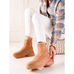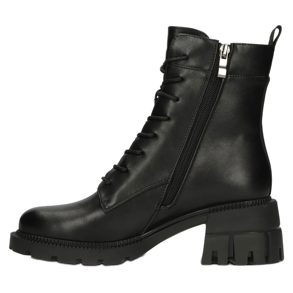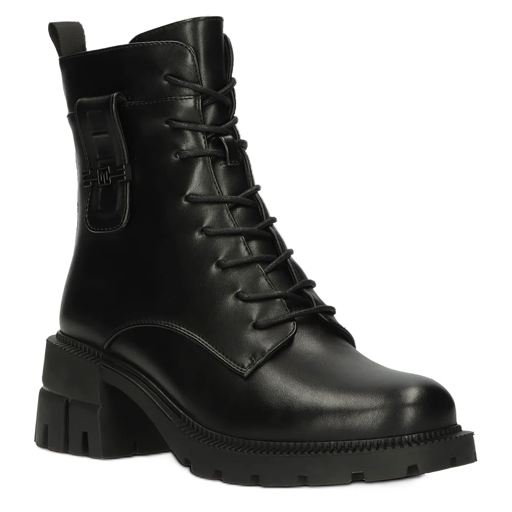 Les bottes chics sont précisément faites de cuir écologique en noir. Les chaussures ont fière allure dans un duo avec tout type de style – à la fois formel et quotidien. Un talon plat de 5,5 cm et un ornement élégant sur le côté de la tige permettent des solutions à la mode et élégantes dans les moindres détails. Les bottes d’hiver pour femmes sont le meilleur choix possible. Les bottes sont doublées d’une fourrure de chaussure agréable, qui garantit la conservation de la chaleur même par temps froid.