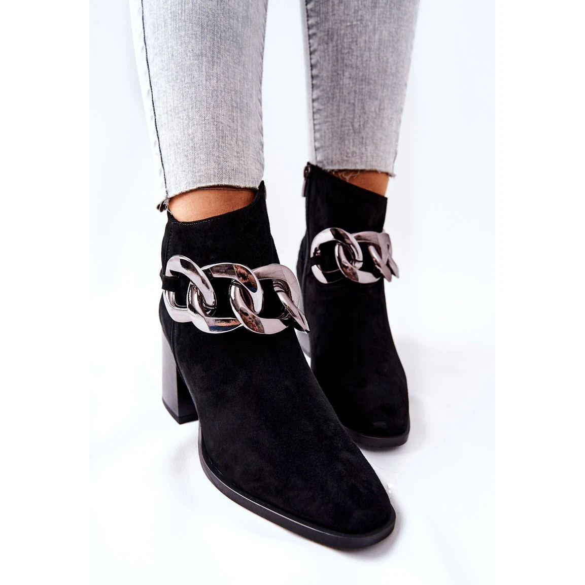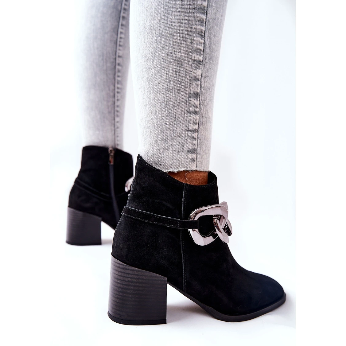 De belles bottes avec une chaîne décorative ont fière allure en combinaison avec des robes ou des jupes. Ils sont faits de peau de chamois naturelle. De plus, à l’intérieur, ils sont isolés avec une couverture pour chaussures. Ils ont une fermeture éclair et un talon large. Ils ne peuvent pas manquer dans votre garde-robe! Lorsque vous choisissez une taille, veuillez utiliser le tableau des tailles.