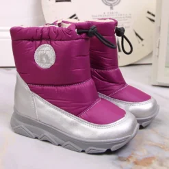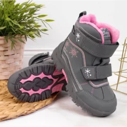 Bottes De Neige Imperméables Pour Filles Avec Membrane Velcro Kornecki 6895 Rose Argent