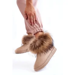 FS1 Bottes De Neige Femme En Daim Avec Fourrure Gris Alexa Beige