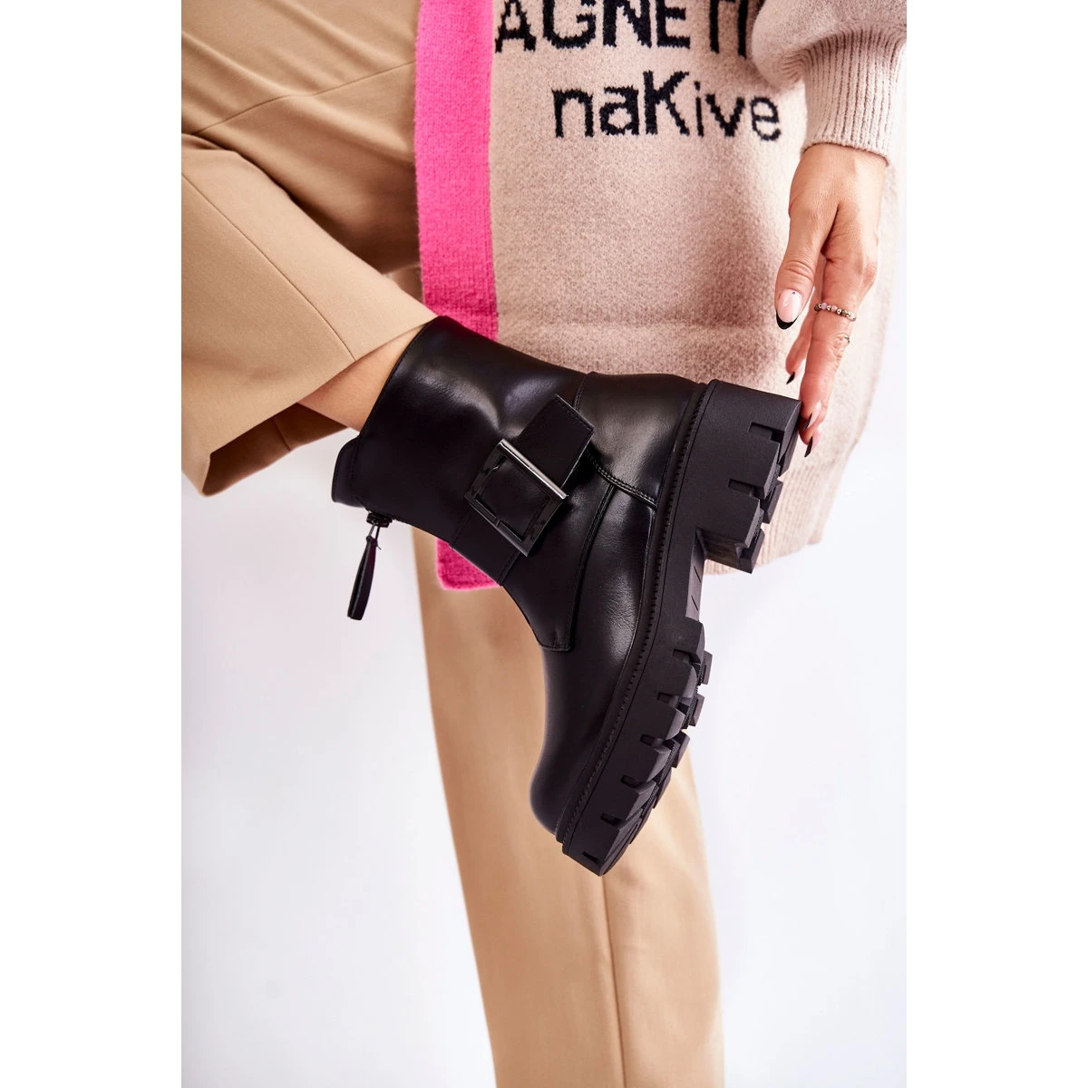 Les bottes pour femmes à la mode sont en cuir écologique. Ce modèle a un talon renforcé. Fermé par une fermeture éclair. De plus, les bottes ont une boucle décorative sur le côté de la tige et une fermeture éclair décorative sur le devant. Montée sur des talons plats et une plateforme. Nez arrondi. N’hésitez pas à découvrir les autres modèles de bottines plates ! Lorsque vous choisissez une taille, veuillez utiliser le tableau des tailles.