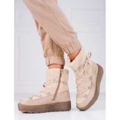Bottes De Neige Pour Femmes Sur La Plate-forme Beige Shelovet