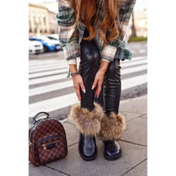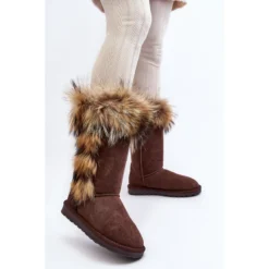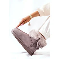 FS1 Bottes De Neige Femme En Daim Avec Fourrure Gris Alexa Beige