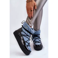 PM1 Bottes De Neige à Lacets à La Mode Pour Femmes Bleu Carrios