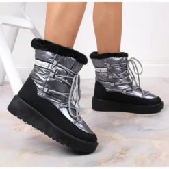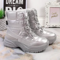Bottes De Neige Argentées Pour Femmes Avec Fourrure Shelovet