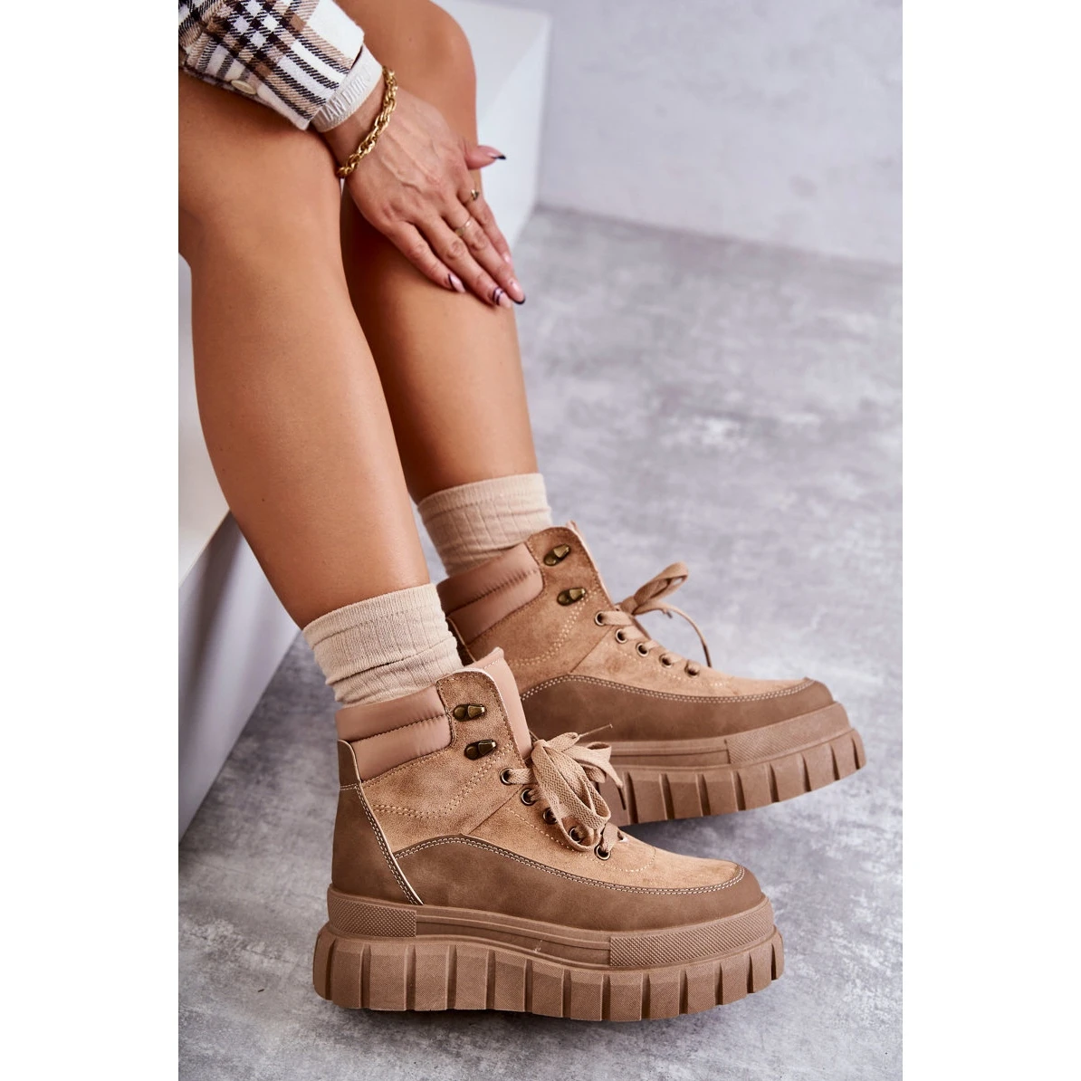 Les bottes pour femmes à la mode sont montées sur une plate-forme massive en caoutchouc. Il est antidérapant. Le modèle est classiquement noué avec des lacets plats. Les bottes sont faites d’une combinaison de daim écologique agréable au toucher et de cuir écologique. Ils ont un bout arrondi. La semelle intérieure en matériau apportera confort et commodité. Vous devez absolument les avoir dans votre garde-robe. Lorsque vous choisissez une taille, veuillez utiliser le tableau des tailles.