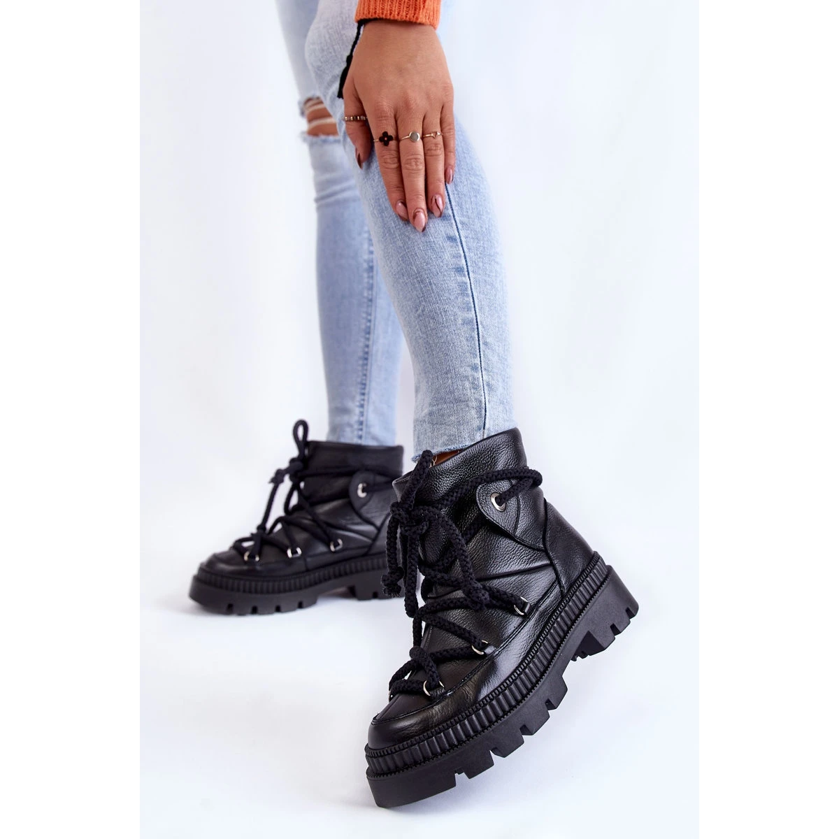 Génial, les bottes de neige pour femmes sont fabriquées en cuir de haute qualité. Le modèle a un laçage épais et solide. Les bottines sont montées sur un talon plat et une plateforme à rainures. Les bottes de neige ont une isolation en fourrure et un contrefort de talon rigide. Ce modèle sera certainement utile à tous les amateurs de chaussures chaudes et confortables ! Lorsque vous choisissez une taille, veuillez utiliser le tableau des tailles.