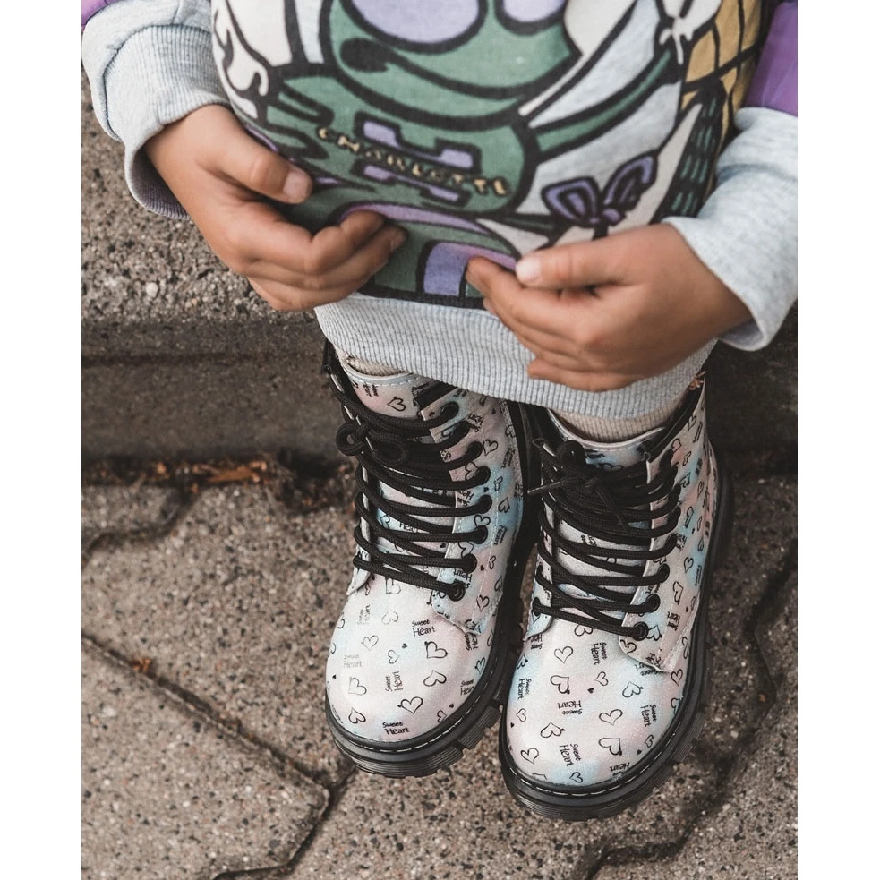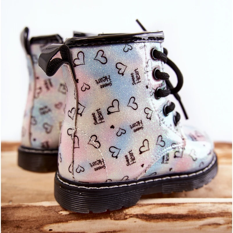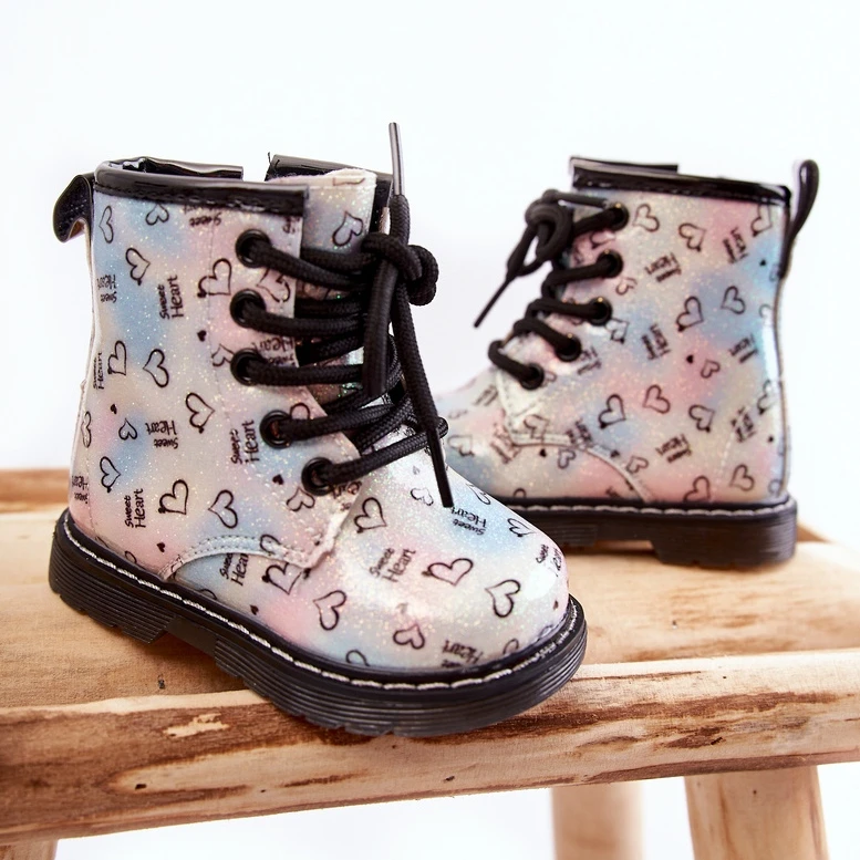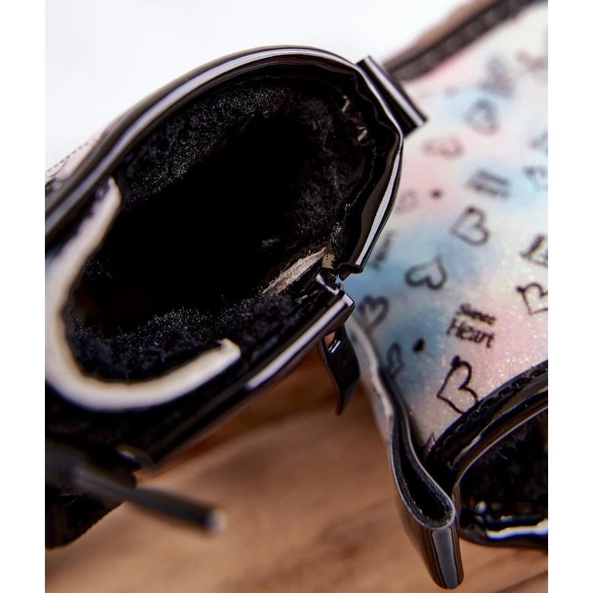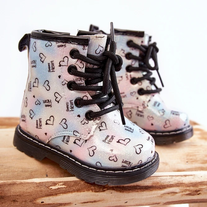 De belles bottes pour filles sont fabriquées en cuir écologique dans un motif à la mode. De plus, ils sont décorés de paillettes. Les bottes ont une fermeture éclair sur le côté de la tige et un laçage classique. Bottes montées sur un talon plat et une plateforme avec une semelle antidérapante. De plus, il est cousu avec du fil. À l’intérieur, ils étaient isolés avec une couverture à chaussures. Un super modèle pour votre tout-petit ! Lorsque vous choisissez une taille, veuillez utiliser le tableau des tailles.