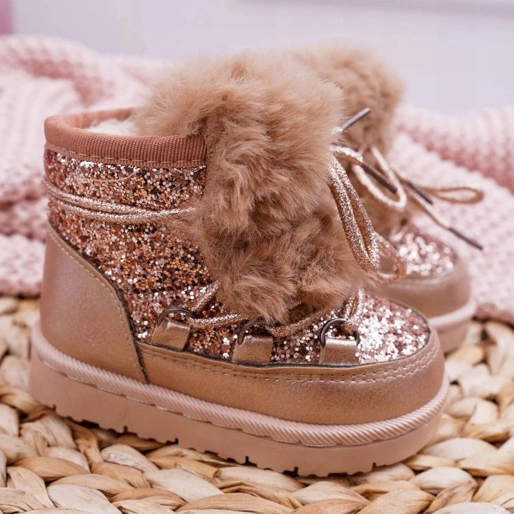 Pendant les journées froides, il vaut la peine de prendre soin de chaussures confortables. L’une de nos propositions sont ces superbes bottes de neige. Isolation épaisse en forme de fourrure qui enveloppera parfaitement les pieds de nos enfants. La fourrure autour de la tige et la poussière scintillante sont un excellent ajout. L’ajustement au pied est en outre assuré par un laçage autour de la cheville. Disponible dans une version pour les plus jeunes et pour les plus grands. Lorsque vous choisissez une taille, veuillez utiliser le tableau des tailles.