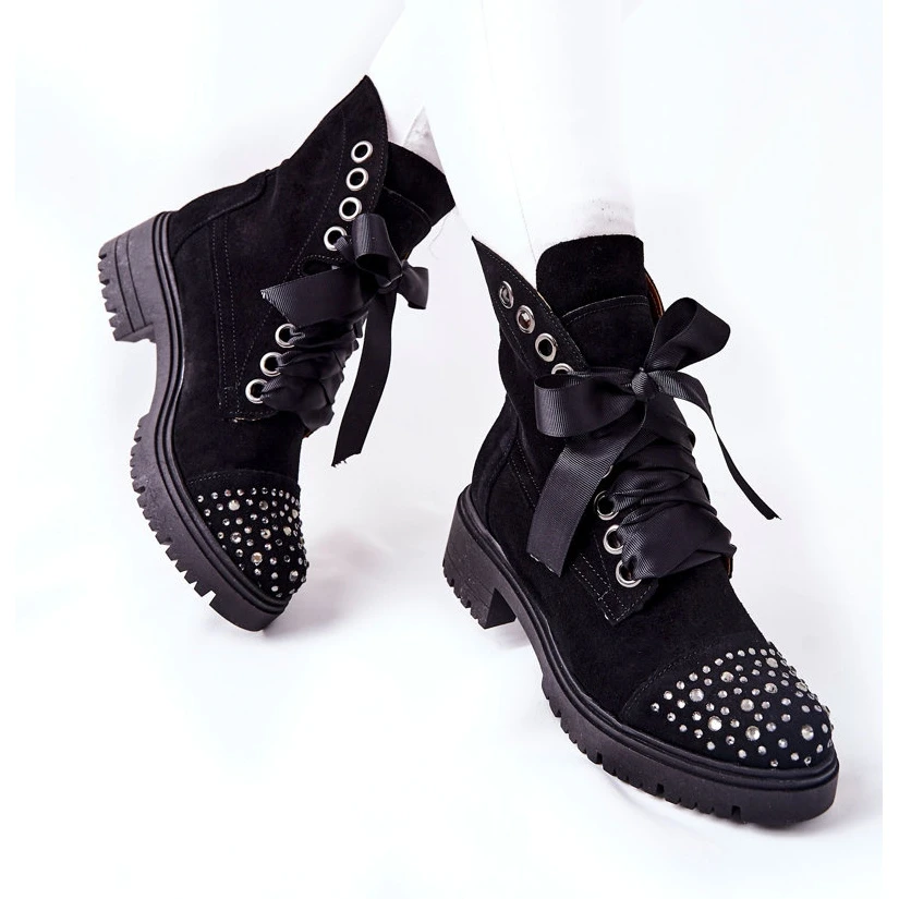 Belles bottes de la célèbre marque polonaise Lewski Shoes. Des chaussures faites avec une attention à chaque détail. Ils sont en cuir naturel. Semelle en caoutchouc. Grâce aux bottes Lewski Shoes, vous vous sentez à l’aise à chaque pas. Les chaussures sont attachées avec un ruban. Le devant des chaussures est décoré de zircone cubique. N’oubliez pas de consulter toute notre collection de chaussures Lewski ! Lorsque vous choisissez une taille, veuillez utiliser le tableau des tailles.
