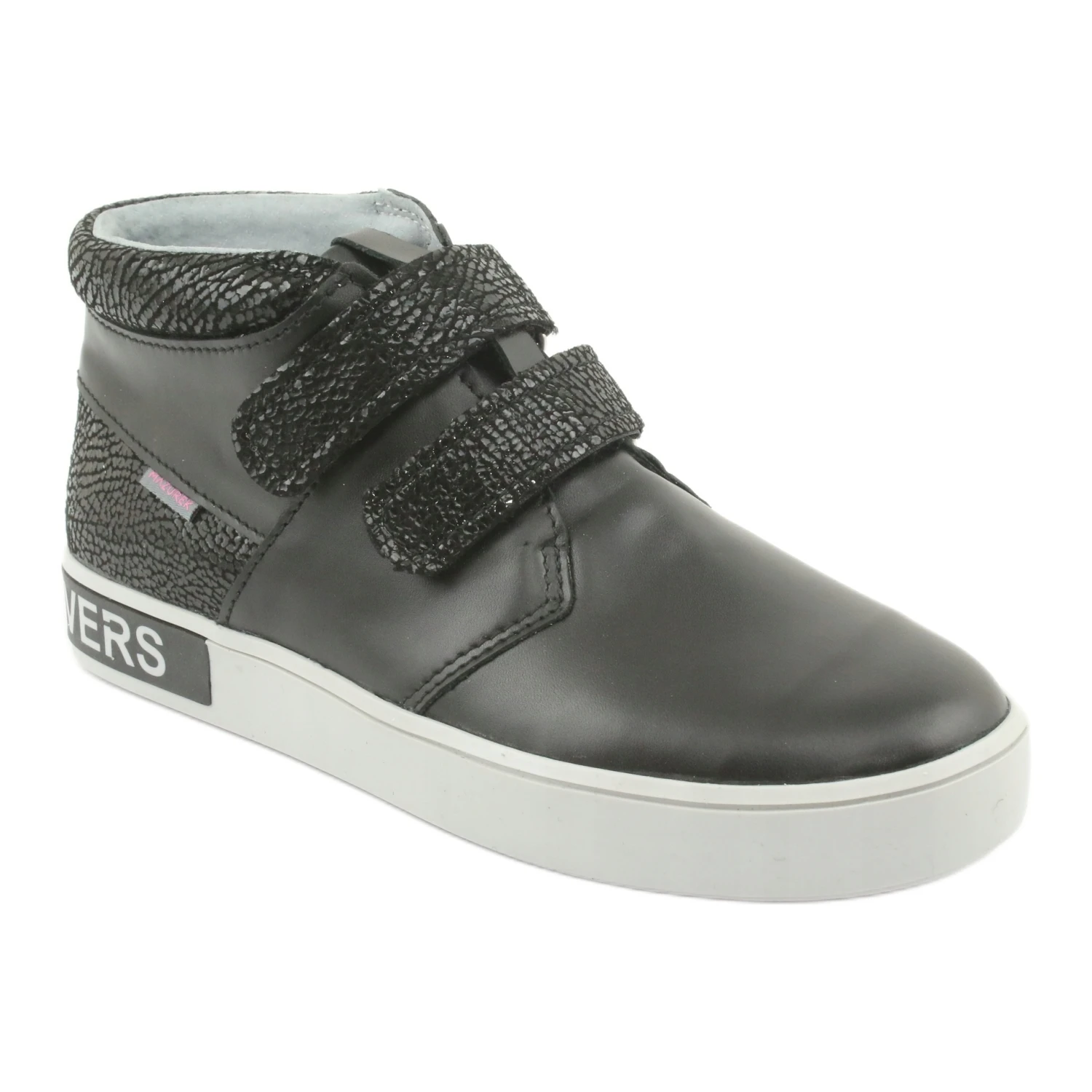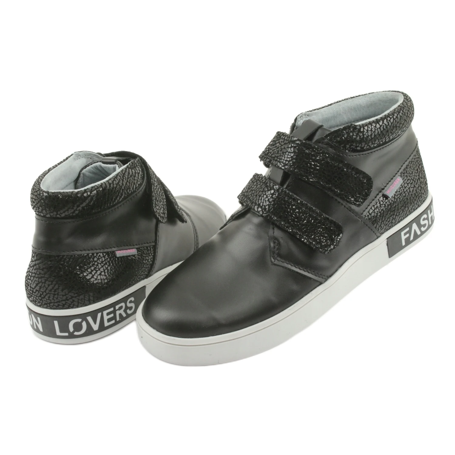 Les chaussures pour enfants optimisées sur le plan orthopédique gardent les petits pieds au chaud les jours les plus froids. Fabriqué en cuir écologique noir mat de haute qualité. Un contrefort de talon rigide et un embout rond et rigide assurent un bon maintien du pied, ce qui offre un confort bien équilibré pendant l’utilisation. La doublure intérieure en cuir s’adapte parfaitement au pied et lui permet de respirer librement. Les deux fermetures velcro assurent un bon confort d’utilisation aussi bien à l’enfilage qu’au retrait.