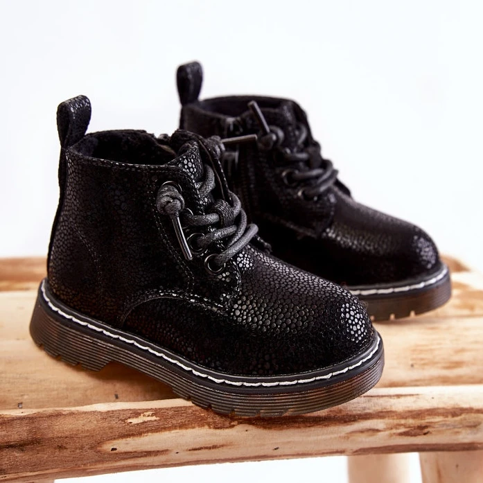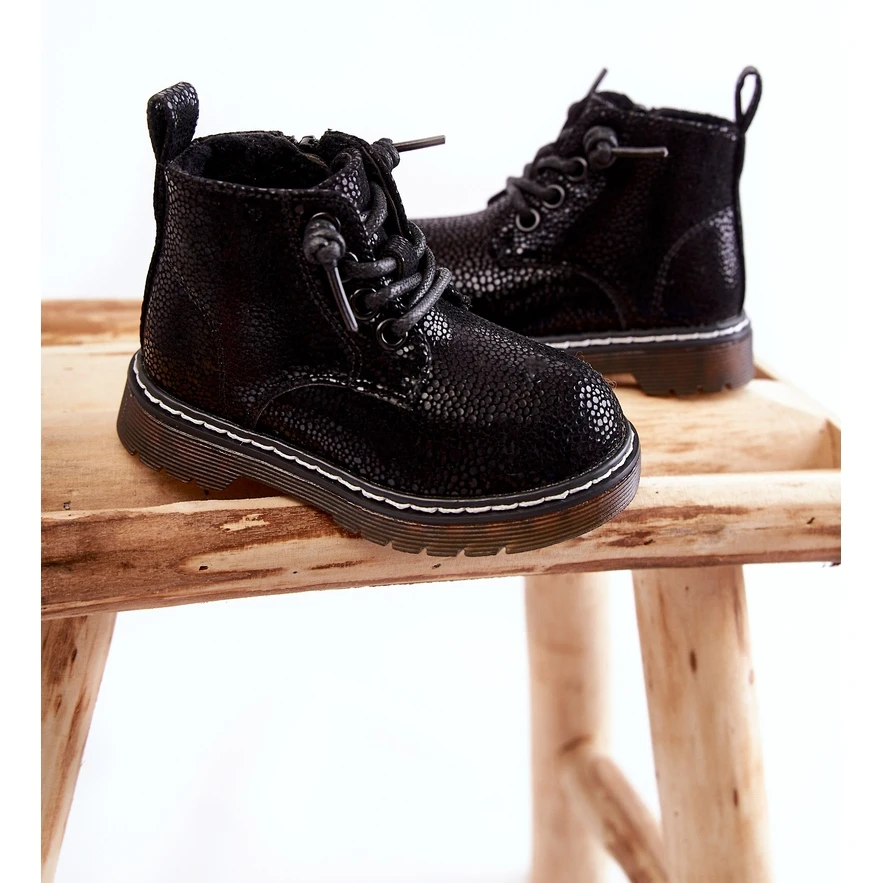 Les bottes classiques pour enfants sont en cuir écologique avec une structure intéressante. Ils ont un contrefort de talon rigide qui permettra la stabilisation du pied de l’enfant. Modèle à lacets avec une fermeture éclair supplémentaire sur le côté de la tige. Réchauffé avec une couverture agréable au toucher. Montée sur un talon plat. Ce modèle sera parfait pour les balades ou les jeux dans le jardin les jours d’automne. Lorsque vous choisissez une taille, veuillez utiliser le tableau des tailles.