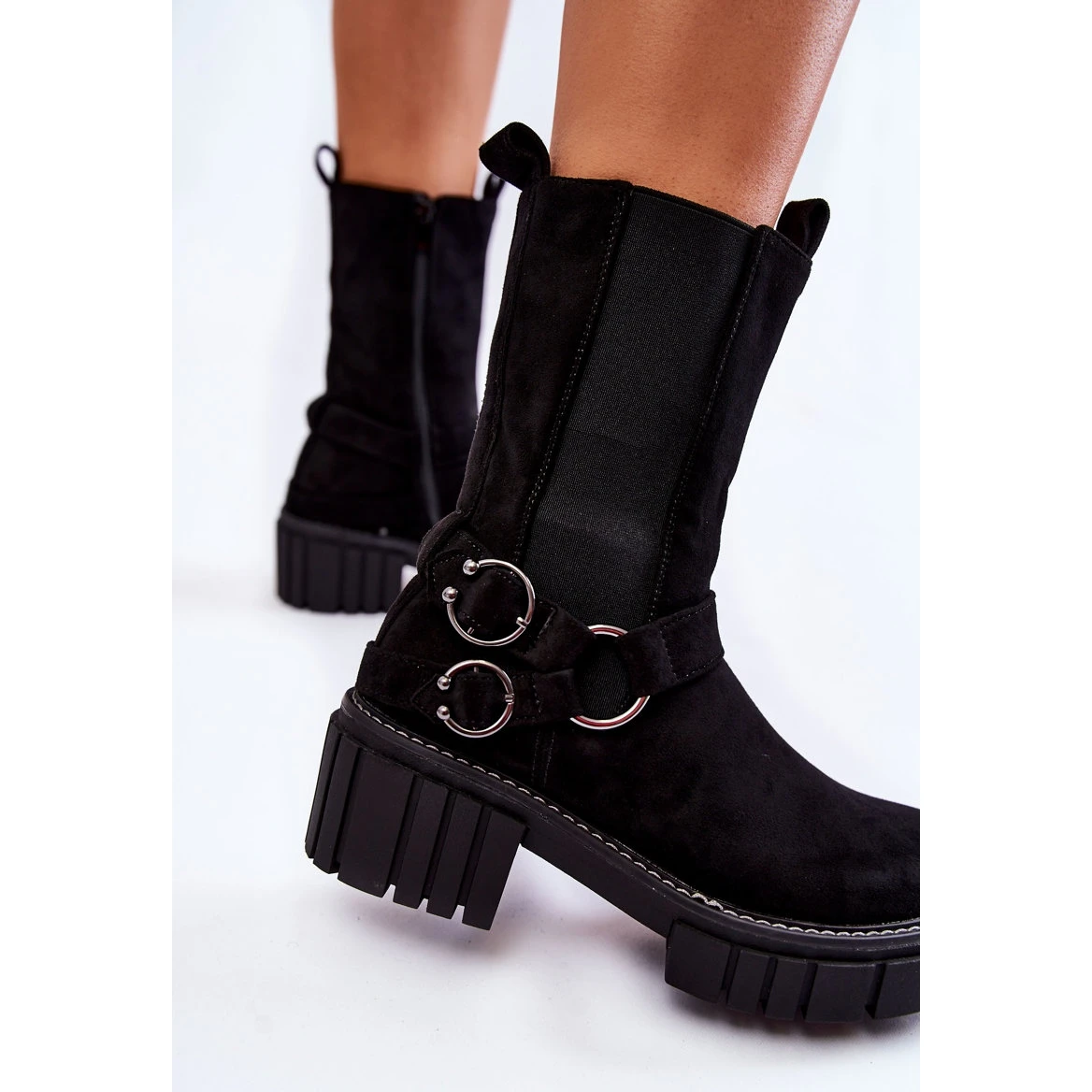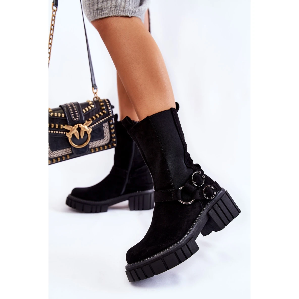 Bottes pour femmes uniques avec une tige supérieure en daim écologique. Ils sont décorés sur le côté de rayures à fermoirs. Fermé par une fermeture éclair. Elles sont montées sur un talon plat massif et une plate-forme avec des rainures sur les côtés. Ces bottes ont une isolation intérieure sous la forme d’une fourrure douce et agréable au toucher. Un excellent modèle pour de nombreux styles! Lorsque vous choisissez une taille, veuillez utiliser le tableau des tailles.