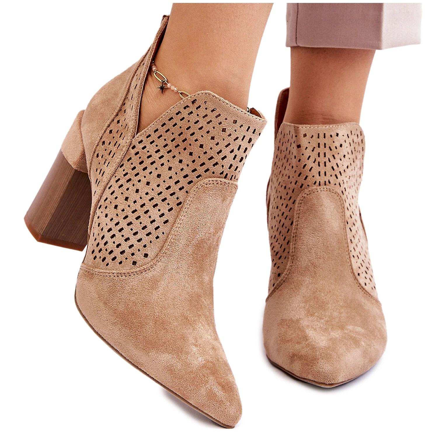 Les bottes ajourées avec un talon à la mode en forme de poteau sont en daim écologique doux avec des découpes sur les côtés de la tige. Un modèle à enfiler classique avec un contrefort de talon renforcé. La semelle intérieure douce et confortable est en cuir écologique. Un talon en forme de tige et un bout pointu affinent optiquement les jambes. Lorsque vous choisissez une taille, veuillez utiliser le tableau des tailles.