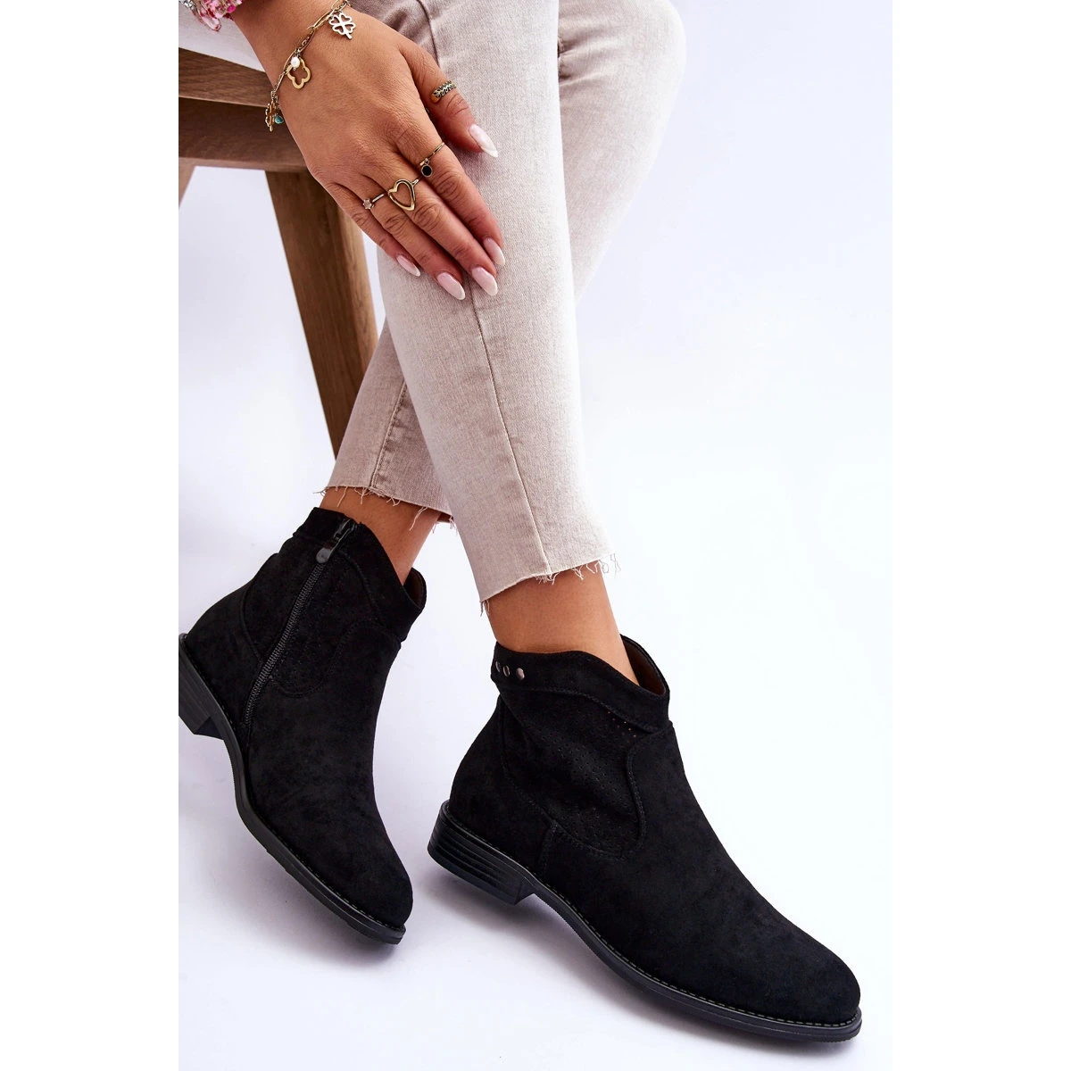 Bottes classiques en éco-suède agréable au toucher avec une tige ajourée. Ils ont des éléments décoratifs sous forme de clous. Montée sur un talon plat. De plus, les bottes ont un contrefort de talon renforcé. Sur le côté de la tige, il y a un curseur pour faciliter l’enfilage des chaussures. N’oubliez pas de consulter également les autres modèles de bottes disponibles dans notre offre ! Lorsque vous choisissez une taille, veuillez utiliser le tableau des tailles.