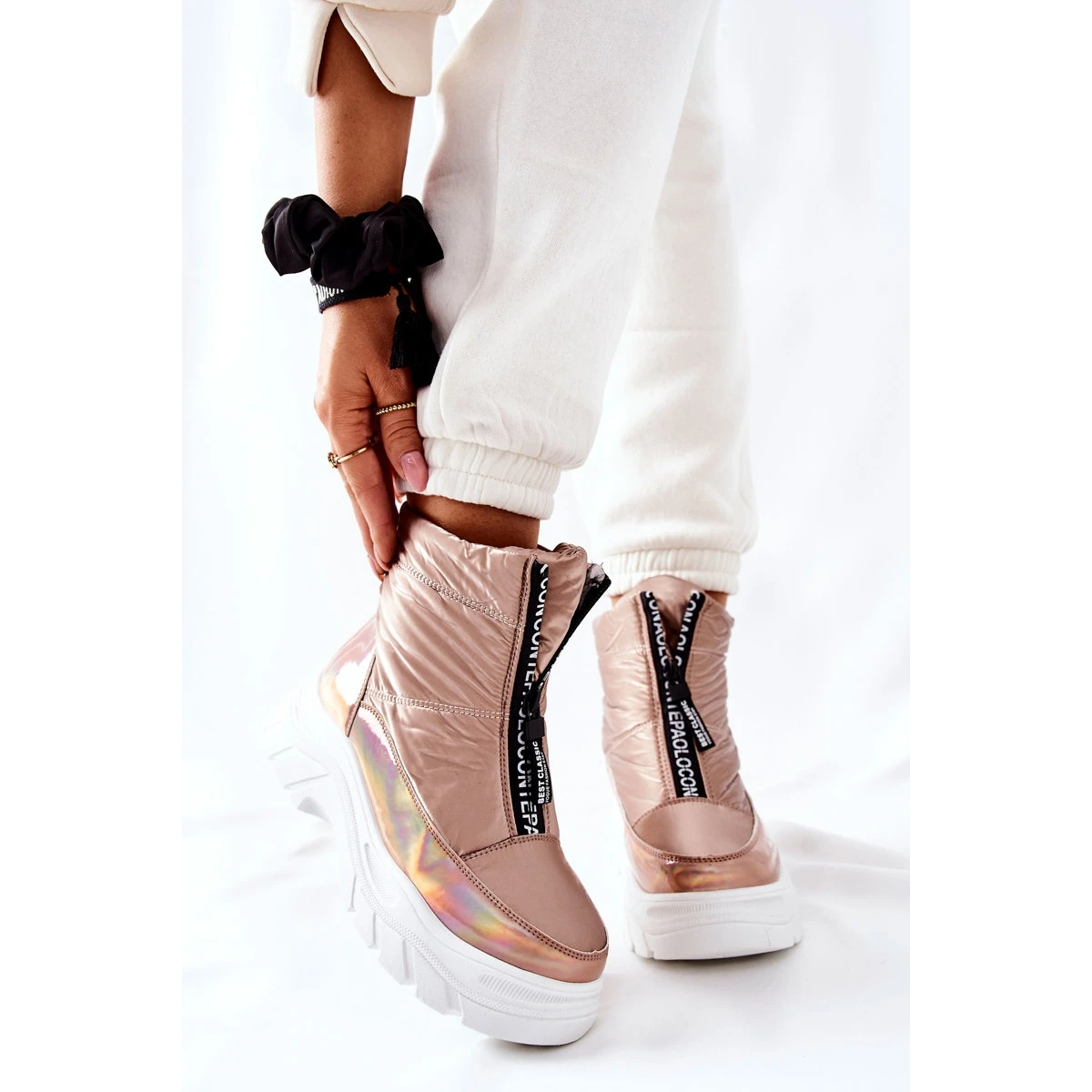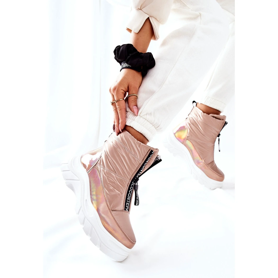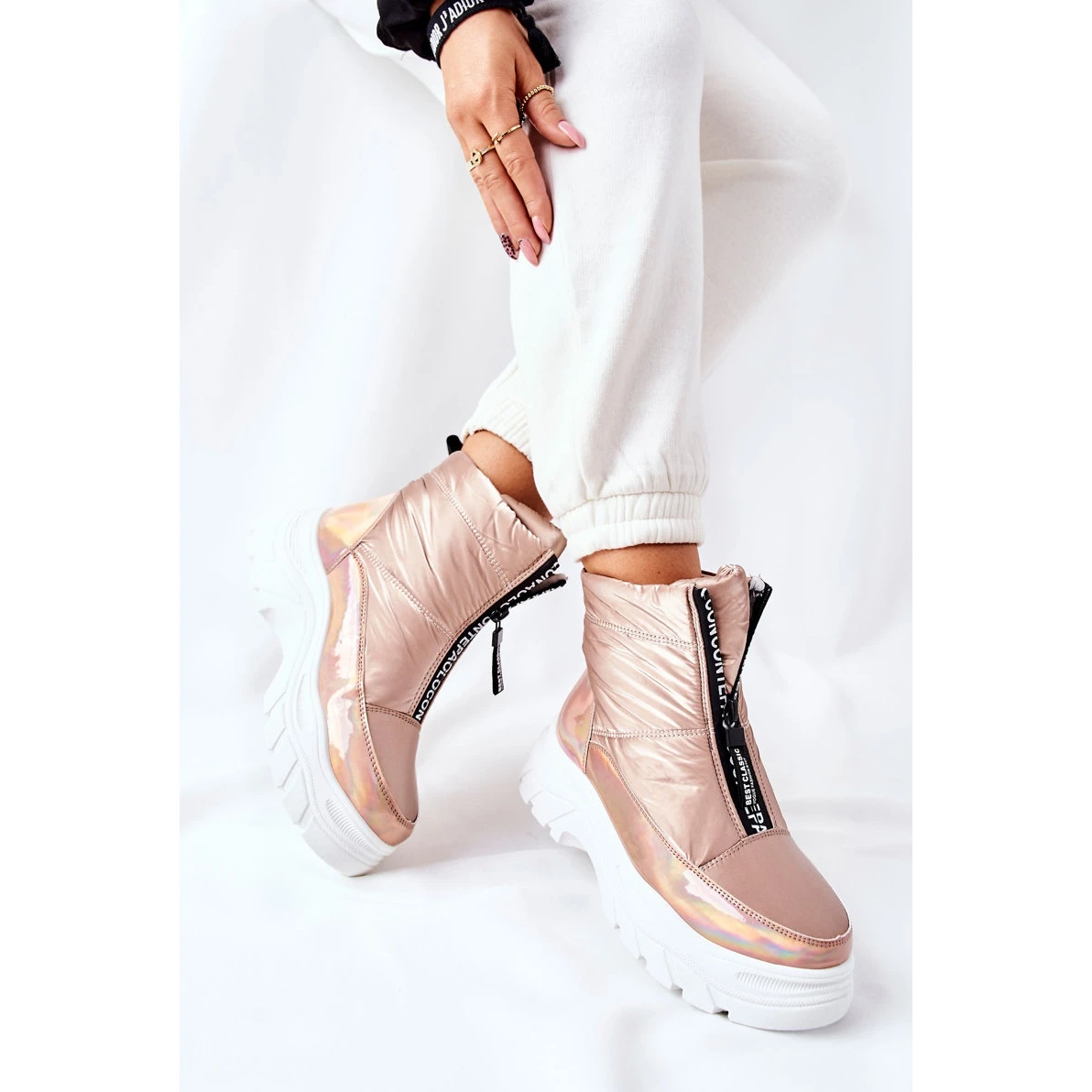Bottes pour femmes en cuir écologique et matière textile. Tige zippée devant. Réchauffé avec une couverture de chaussures.