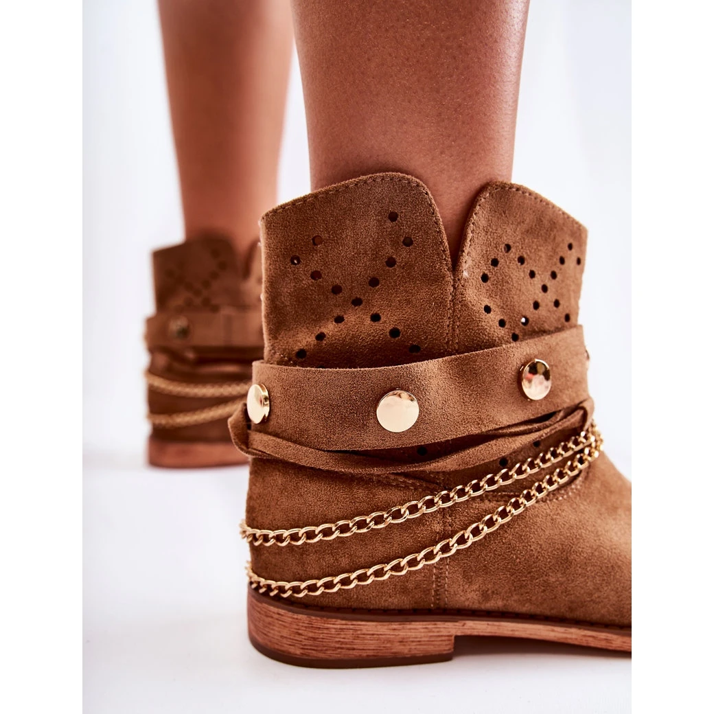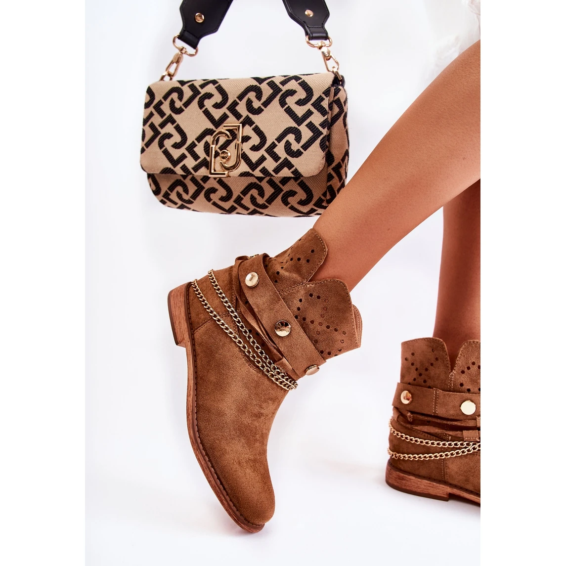 Les bottines à semelle compensée cachée et talon plat ont une tige à la cheville légèrement perforée. Modèle à enfiler, fabriqué en daim écologique. Une semelle intérieure en cuir écologique doux permet une utilisation confortable. Talon raidi. Parfait pour le printemps et l’automne. Les bottes ont des sangles séparées et une chaîne, vous pouvez donc les porter avec ou sans décorations. Lorsque vous choisissez une taille, veuillez utiliser le tableau des tailles.